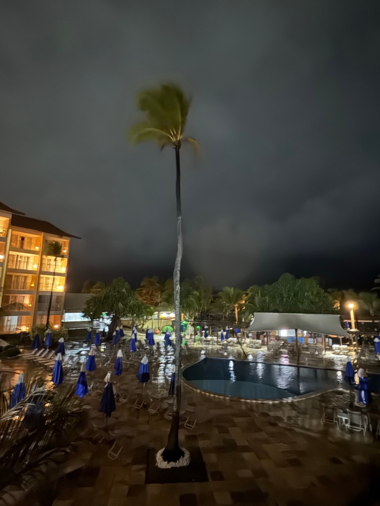 À beira da piscina, comemos um petisco de filé com fritas acompanhado de caipiroscas, apreciando o final de tarde baiano em um ambiente que já conhecíamos bem. Estes momentos simples – a comida saborosa, a bebida refrescante, a vista familiar – criaram uma atmosfera perfeita para relaxar após os dias intensos de descobertas culturais e aventuras em Morro de São Paulo.