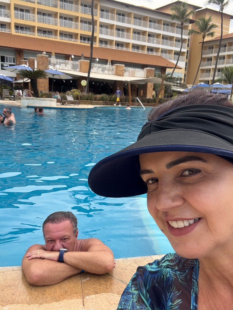 Aproveitamos a parte da tarde para ir à piscina, desfrutando do ambiente familiar e acolhedor do Gran Hotel Stella Maris. A infraestrutura do resort sempre nos impressiona, oferecendo o equilíbrio perfeito entre conforto e vista para o mar.
