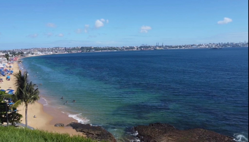 Passamos pelo bairro de Ondina, conhecido por suas praias lindas de água verde cristalina. Ondina é famosa por suas piscinas naturais que se formam entre as pedras durante a maré baixa, criando verdadeiros aquários naturais onde é possível tomar banho com segurança.