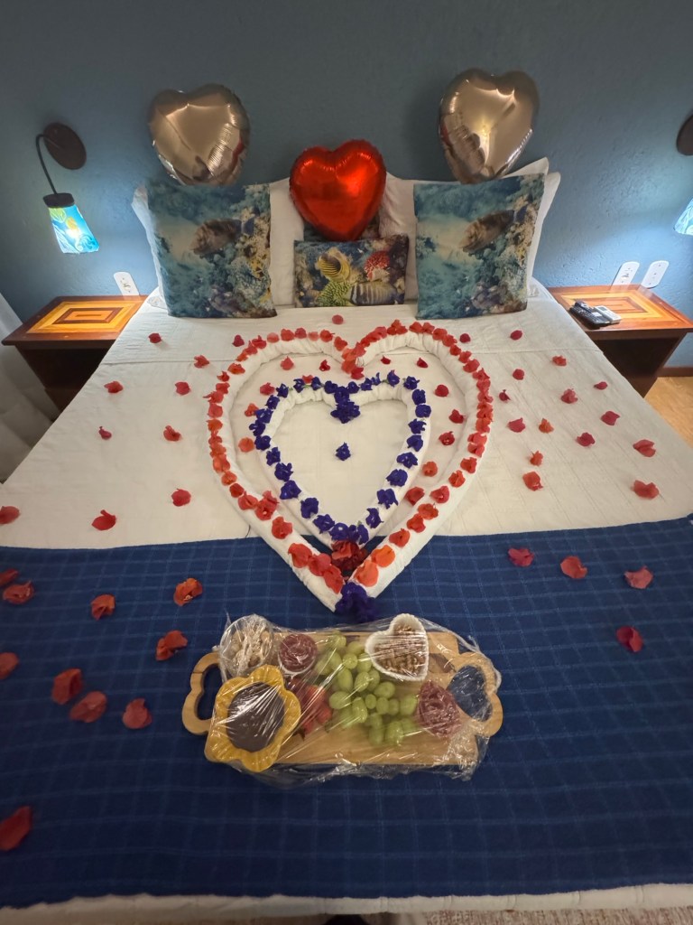 Nosso quarto era maravilhoso, com vista frontal para o mar – uma paisagem que parecia ter saído de um cartão-postal. A área da piscina era um dos grandes destaques: uma piscina de borda infinita com vista direta para o oceano, onde o azul da água se confundia com o horizonte.