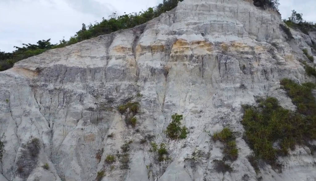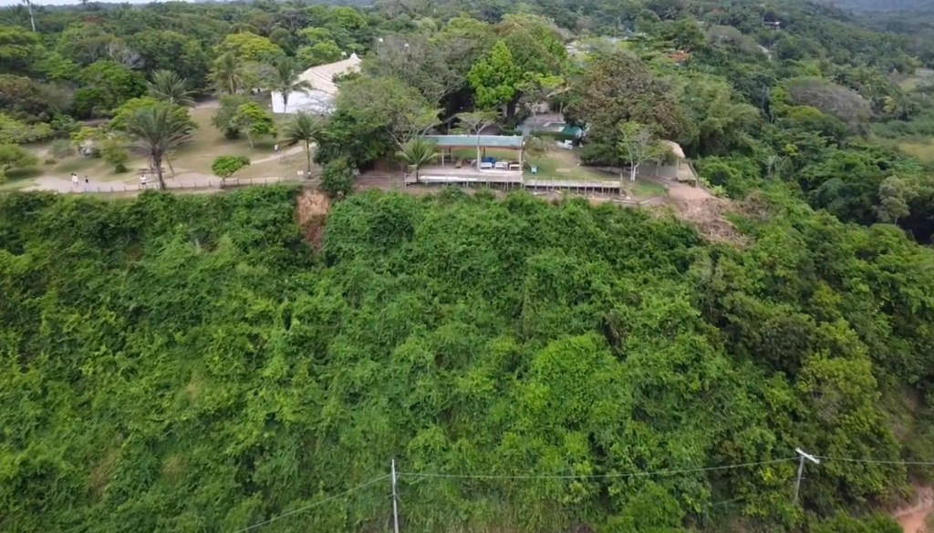 Voamos com o Drone e conseguimos ver os Espelhos, as Falésias, o Mirante do Outeiro e a Praia do Outeiro. Antigamente era possível subir no mirante para admirar a beleza da praia do alto, mas hoje já não é possível pois o mirante fica dentro de um condomínio fechado.