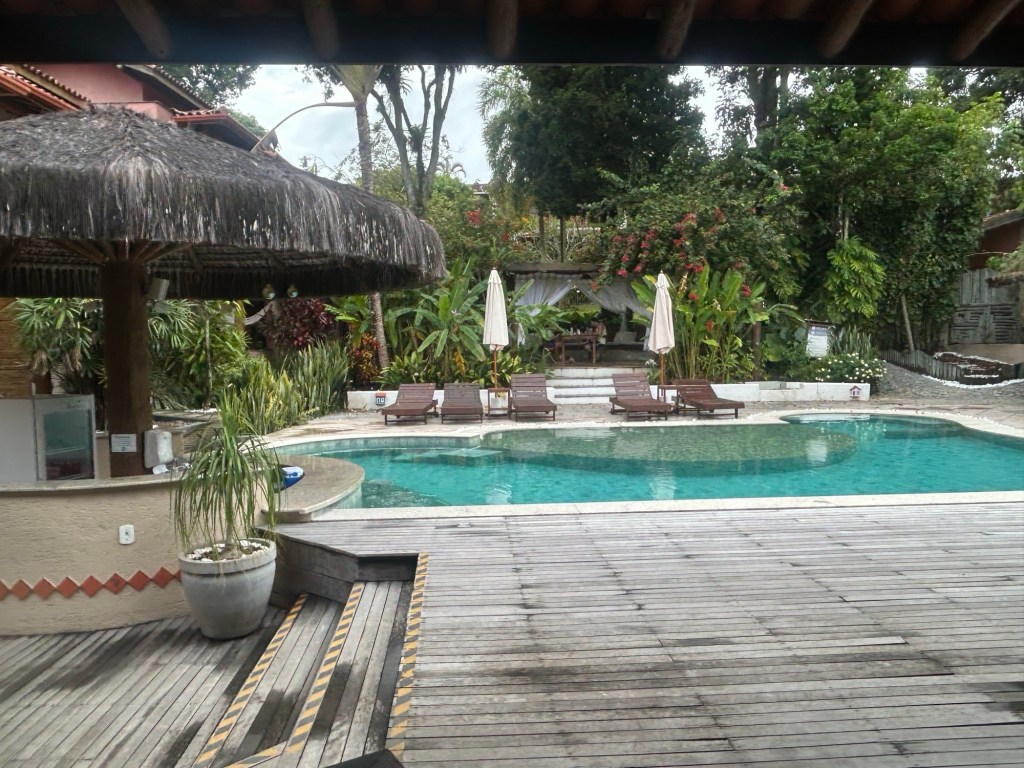 Vale registrar: a pousada tem uma área verde linda, com a piscina no centro, cercada de natureza. Um lugar super aconchegante, daqueles que abraçam a gente.