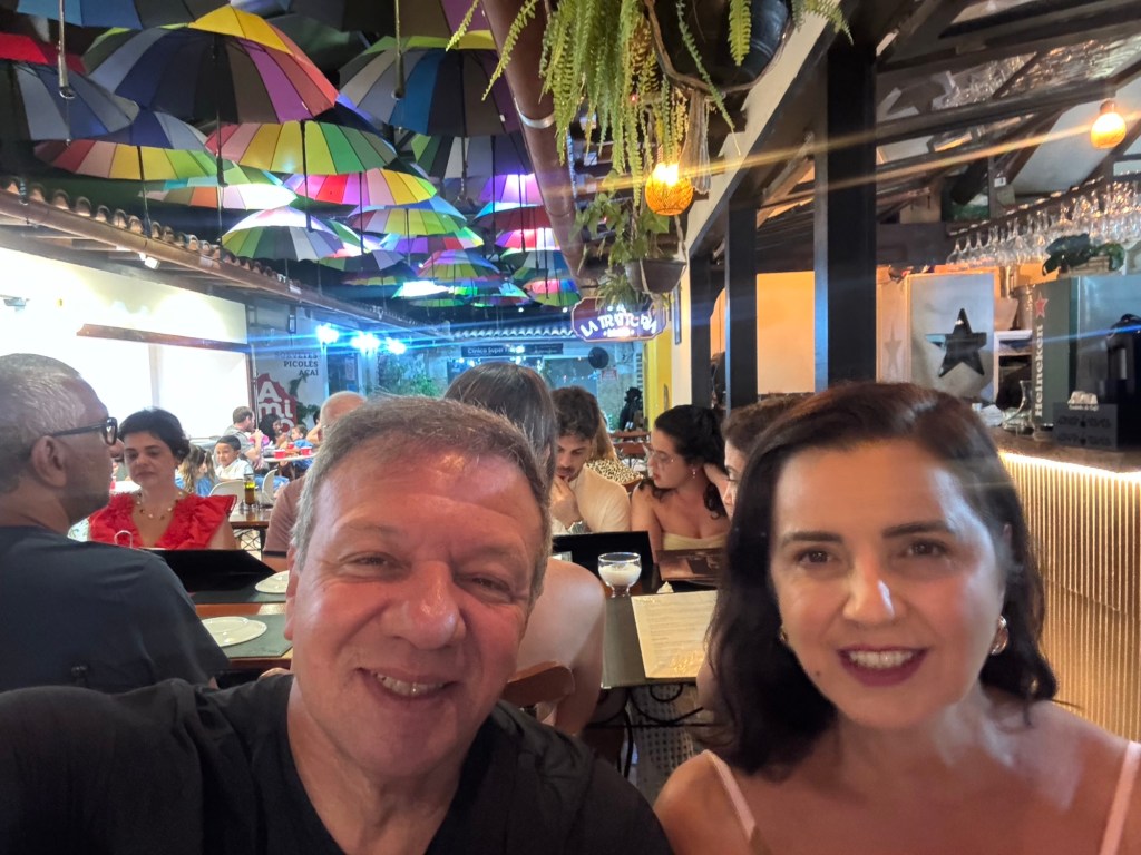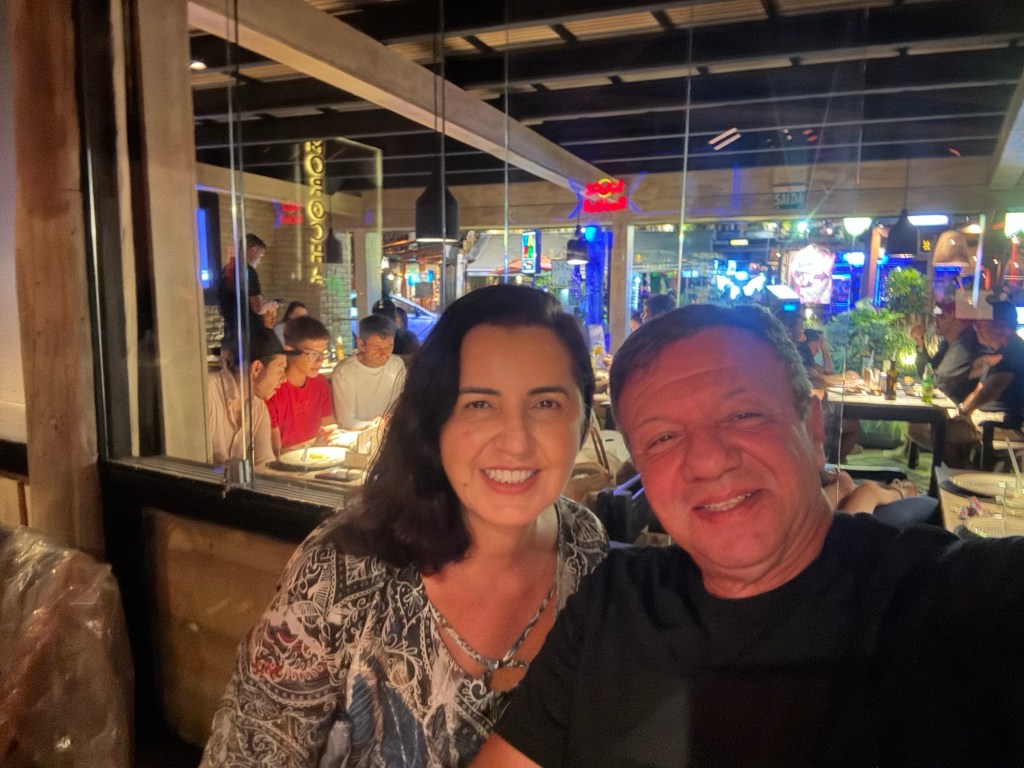 À noite, nos arrumamos para sair para jantar e fechar com chave de ouro a última comemoração do dia do aniversário — os 61 anos do Fernando.