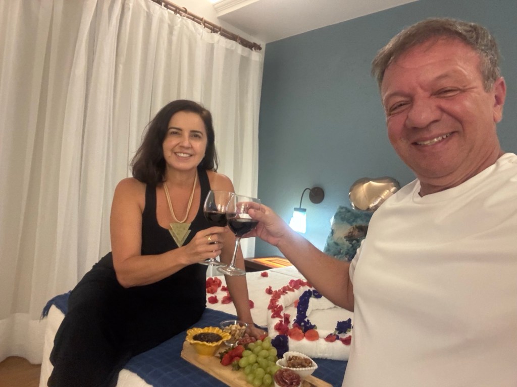 A gente ficou ali curtindo o ambiente, brindando, saboreando as delícias e vivendo aquele momento nosso.